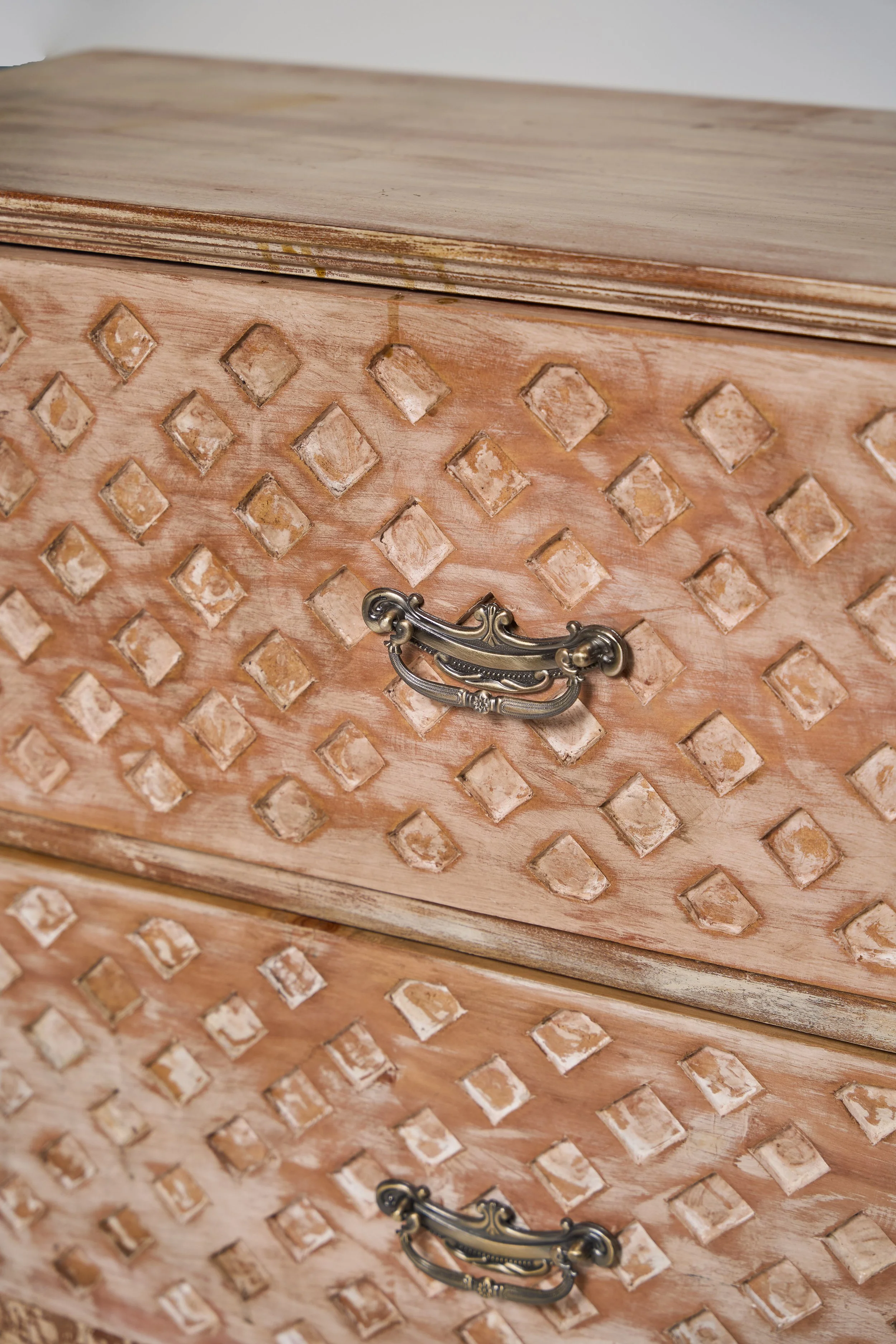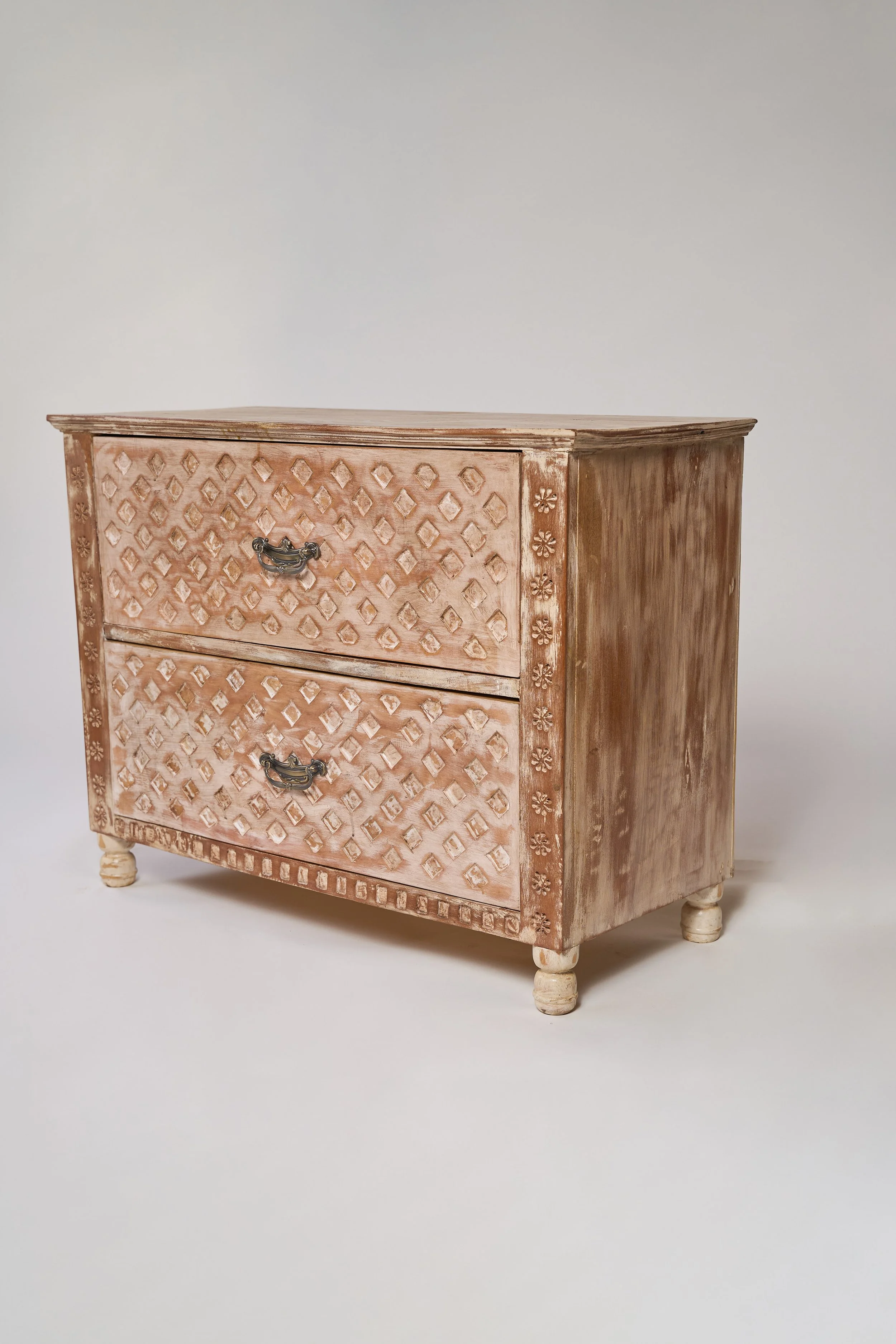 Inspired by the intricate artistry of Swahili coastal design, the Tiwi Swahili Dresser is a rich mahogany piece that blends cultural heritage with refined function. Hand-carved arabesques echo the mashrabiya latticework found in traditional Swahili architecture, while scalloped edges and brass sail-shaped pulls nod to the craftsmanship of Lamu’s master woodworkers. A subtle whitewash finish softens the warm curry-toned wood, adding a sun-worn, coastal elegance that evokes salt air and spice markets—bringing soulful beauty and timeless character to any space.